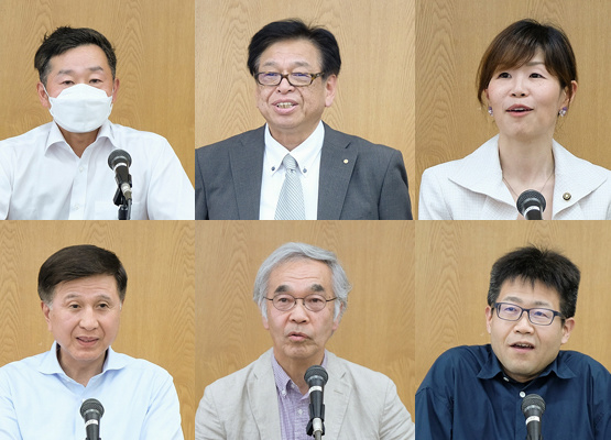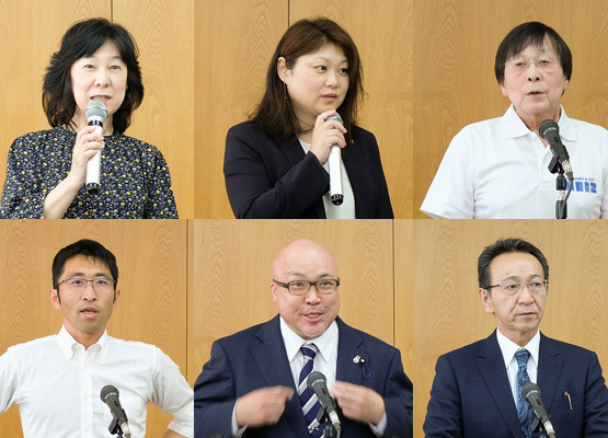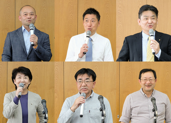 パネリスト:小林由美氏(室蘭市議)、嶋中康晴氏(苫小牧市議)、塚本逸彦氏(幕別町議)、林己人氏(喜茂別町長)、柳田健太郎氏(帯広市議)